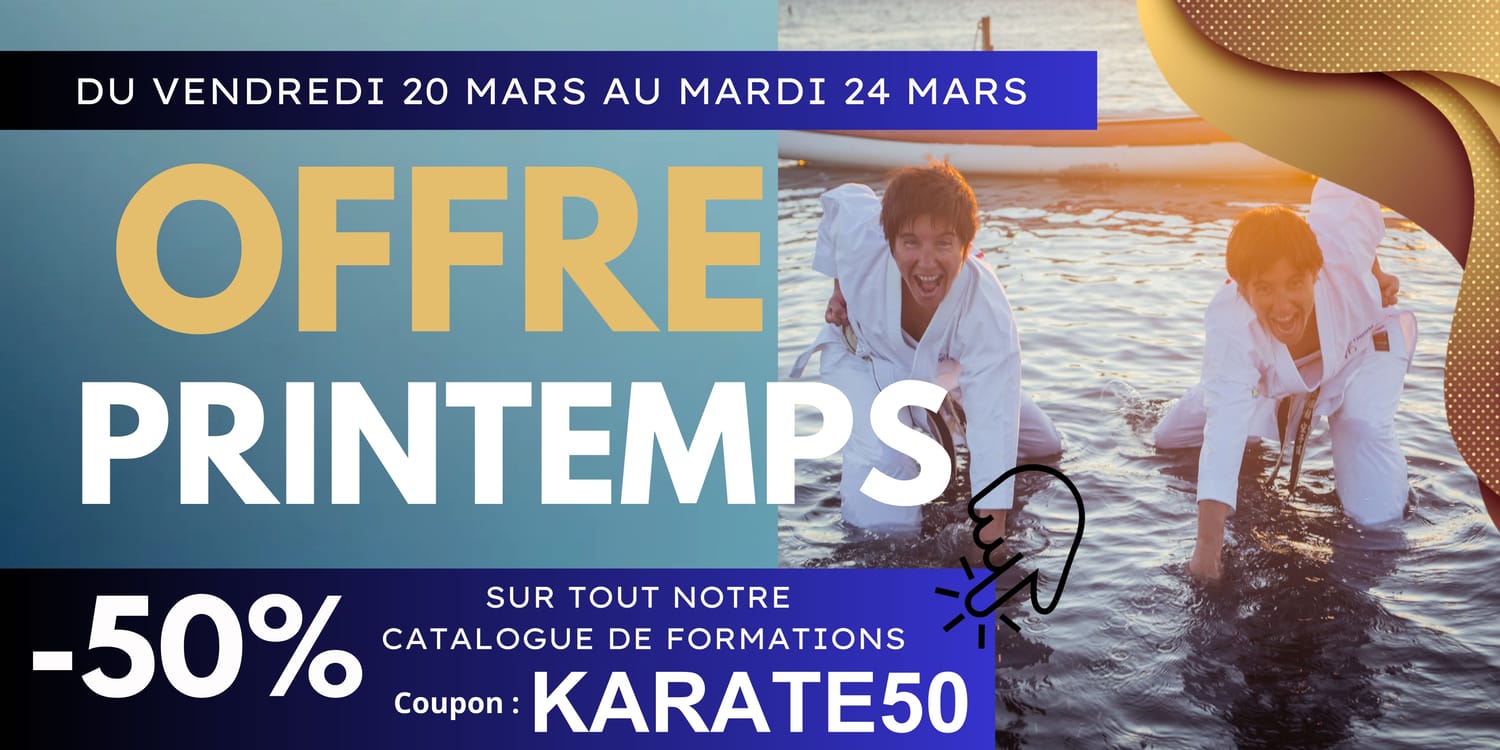 Rendez-vous sur la formation ou le pack de votre choix. Au moment de la commande, entrez le code KARATE50 dans la case "bon de réduction" et cliquez sur "valider".